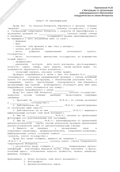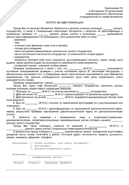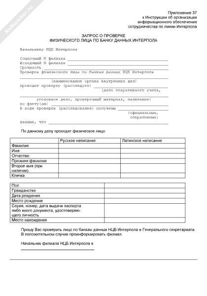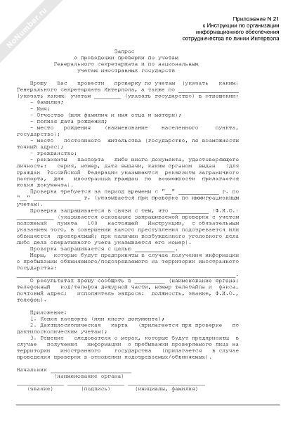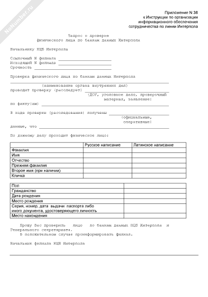 Запрос о проведении проверки по учетам Генерального секретариата Интерпола и по национальным учетам иностранных государств (рекомендуемый образец заполнения)