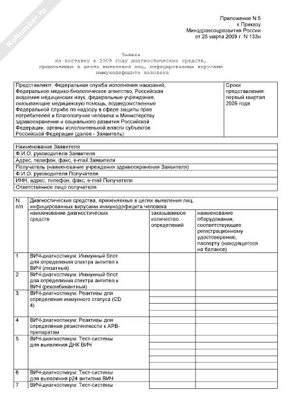 - 437Заявка на поставку в 2009 году диагностических средств, применяемых в целях выявления лиц, инфицированных вирусами иммунодефицита человека