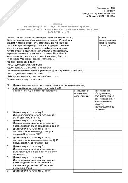 - 438Заявка на поставку в 2009 году диагностических средств, применяемых в целях выявления лиц, инфицированных вирусами гепатитов B и C