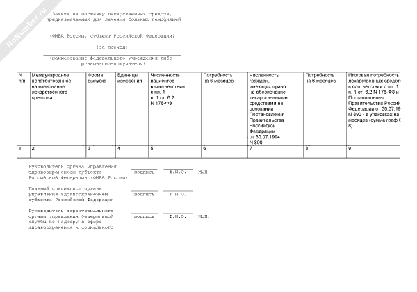- 426Заявка на поставку лекарственных средств, предназначенных для лечения больных гемофилией