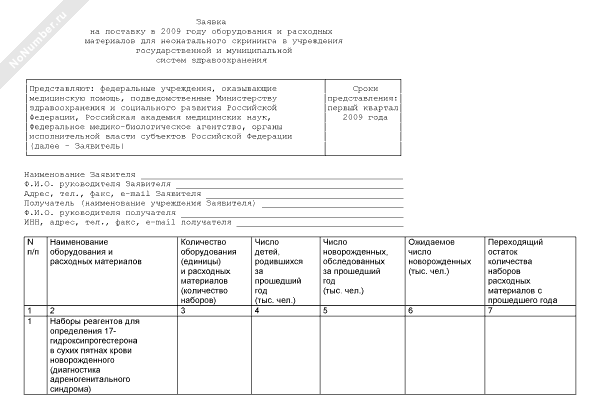 - 439Заявка на поставку в 2009 году оборудования и расходных материалов для неонатального скрининга в учреждения государственной и муниципальной систем здравоохранения