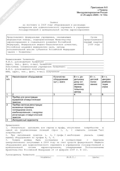- 440Заявка на поставку в 2009 году оборудования и расходных материалов для аудиологического скрининга в учреждения государственной и муниципальной систем здравоохранения