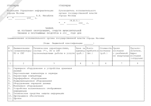 - 422Заявка на поставку оборудования, средств вычислительной техники и программных продуктов для нужд города Москвы
