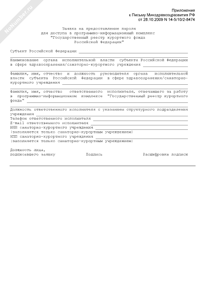- 489Заявка на предоставление пароля для доступа в программно-информационный комплекс «Государственный реестр курортного фонда Российской Федерации»