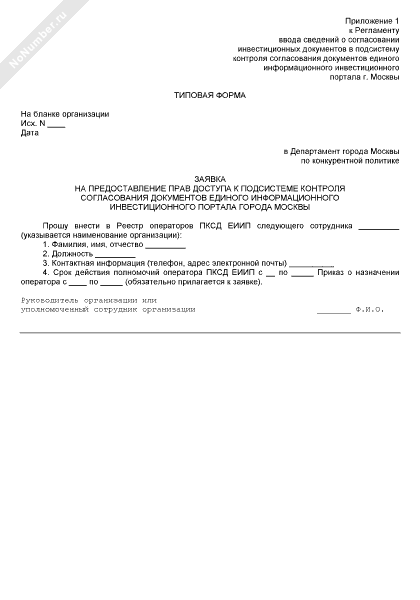 - 481Заявка на предоставление прав доступа к подсистеме контроля согласования документов единого информационного инвестиционного портала города Москвы