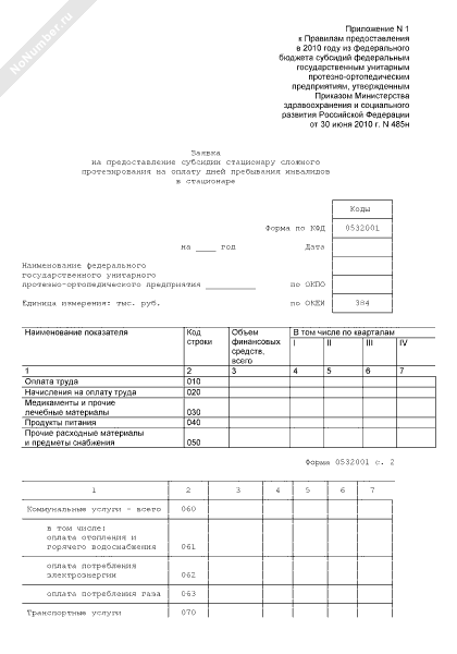- 491Заявка на предоставление субсидии стационару сложного протезирования на оплату дней пребывания инвалидов в стационаре