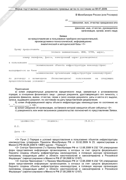 - 488Заявка на предоставление в пользование приборно-инструментальной, производственно-технологической, информационно-аналитической и методической базы