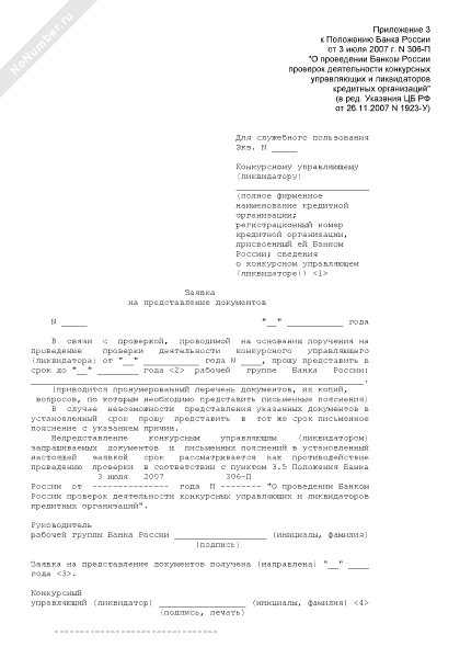 - 492Заявка на представление документов, необходимых для проведения проверки деятельности конкурсных управляющих и ликвидаторов кредитной организации
