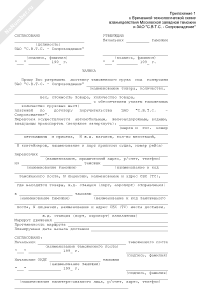 - 494Заявка на привлечение (допуск) закрытого акционерного общества «С.В.Т.С. — Сопровождение» к участию в обеспечении доставки перевозимых под таможенным контролем товаров и транспортных средств