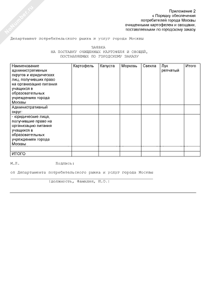 - 52Заявка Департамента потребительского рынка и услуг города Москвы на поставку очищенных картофеля и овощей, поставляемых по городскому заказу