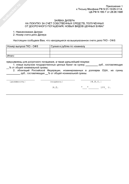 - 53Заявка дилера на покупку за счет собственных средств, полученных от досрочного погашения, новых видов ценных бумаг