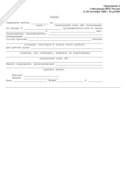 - 58Заявка для обеспечения безопасного производства работ в устройствах электроснабжения железных дорог