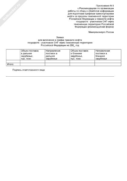 - 56Заявка для включения в график транзита нефти государств — участников СНГ через таможенную территорию Российской Федерации