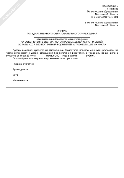 - 48Заявка государственного образовательного учреждения на обеспечение бесплатного проезда детей-сирот и детей, оставшихся без попечения родителей, лиц из их числа в возрасте от 18 до 23 лет Московской области