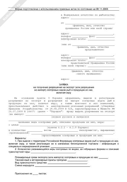- 51Заявка гражданина на получение разрешения на экспорт (или разрешения на импорт) осетровых видов рыб и продукции из них, включая икру