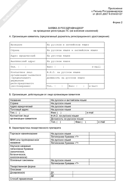 - 42Заявка в Росздравнадзор на проведение регистрации лекарственного средства (на внесение изменений) (форма № 2)