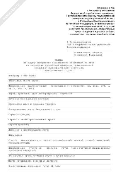 - 43Заявка в Россельхознадзор (в территориальное управление Россельхознадзора) на выдачу импортного карантинного разрешения на ввоз на территорию Российской Федерации подкарантинной продукции (подкарантинного материала, подкарантинного груза)