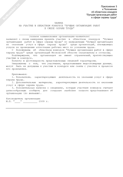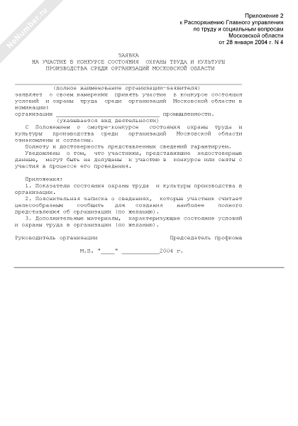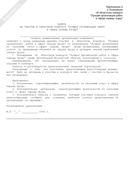 - 672Заявка на участие в конкурсе состояния охраны труда и культуры производства среди организаций Московской области