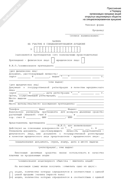 - 667Заявка на участие в специализированном аукционе продажи акций открытых акционерных обществ, находящихся в муниципальной собственности Павлово-Посадского муниципального района Московской области