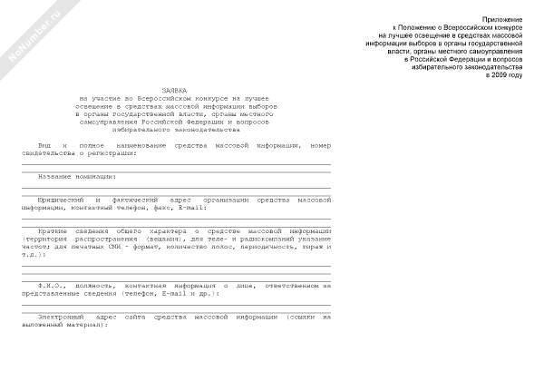 - 680Заявка на участие во Всероссийском конкурсе на лучшее освещение в средствах массовой информации выборов в органы государственной власти, органы местного самоуправления Российской Федерации и вопросов избирательного законодательства