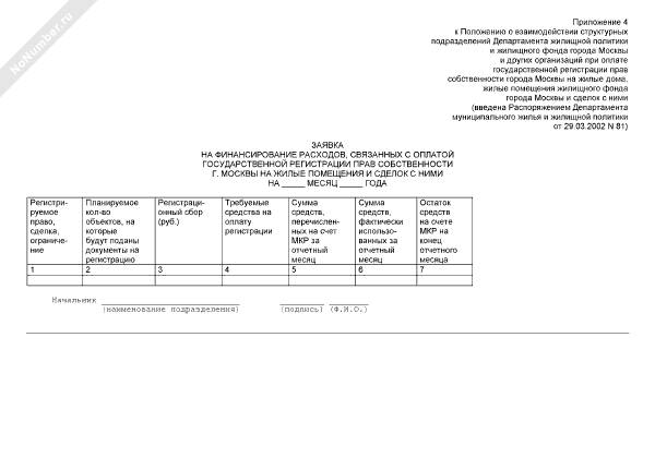 - 854Заявка на финансирование расходов, связанных с оплатой государственной регистрации прав собственности г. Москвы на жилые помещения и сделок с ними