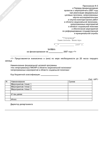 - 845Заявка на финансирование в рамках федеральной целевой программы (непрограммных НИОКР в области национальной экономики/непрограммных мероприятий в области социальной политики)