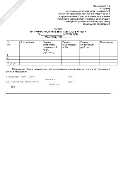 - 851Заявка на финансирование выплаты компенсации части родительской платы за содержание ребенка в государственных и муниципальных образовательных учреждениях Ногинского муниципального района Московской области