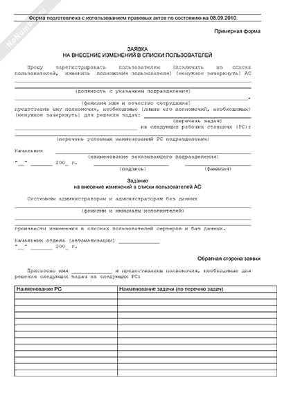 - 1054Заявка на внесение изменений в списки пользователей АС
