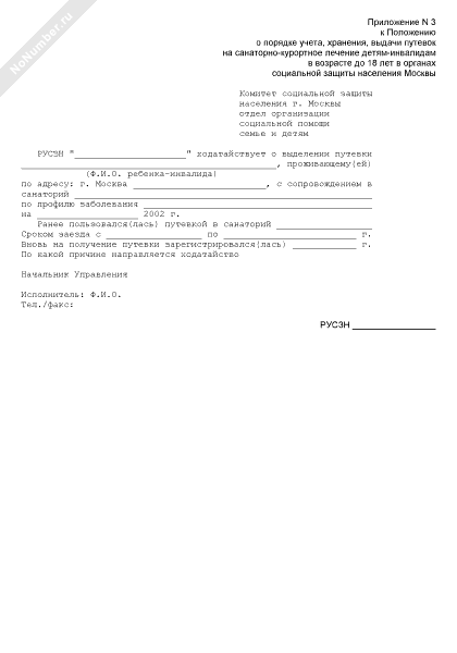 Индивидуальная заявка (ходатайство) на путевку в санаторий для ребенка-инвалида и его сопровождающего