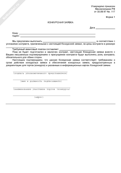 Конкурсная заявка на участие в торгах (конкурсе) на закупку работ (форма № 1)
