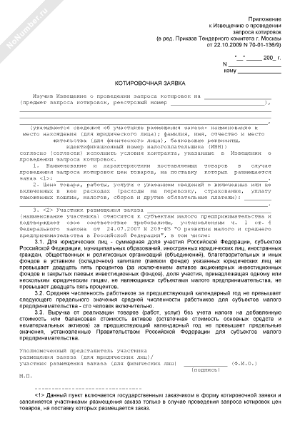 Котировочная заявка (приложение к извещению о проведении запроса котировок)