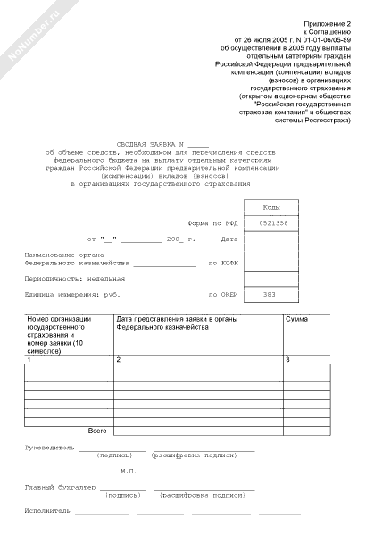 Сводная заявка об объеме средств, необходимом для перечисления средств федерального бюджета на выплату отдельным категориям граждан Российской Федерации предварительной компенсации (компенсации) вкладов (взносов) в организациях государственного страхования