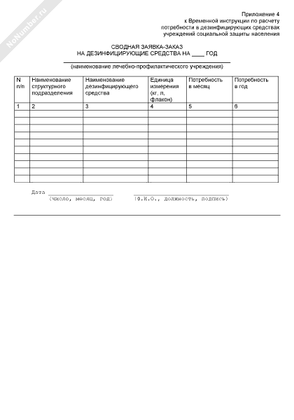 Сводная заявка-заказ на дезинфицирующие средства для лечебно-профилактического учреждения г. Москвы (рекомендуемый образец заполнения)