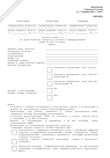 Типовая заявка на предоставление сервисов и доступа к информационному фонду центрального узла информационно-коммуникационной системы Росатома (рекомендуемый образец заполнения)