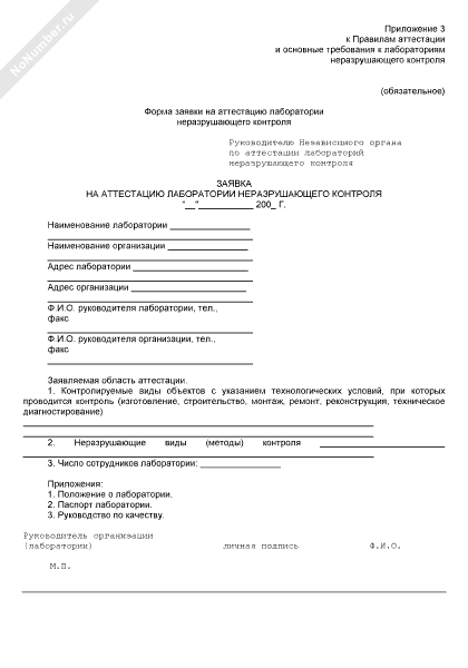 Заявка на аттестацию лаборатории неразрушающего контроля