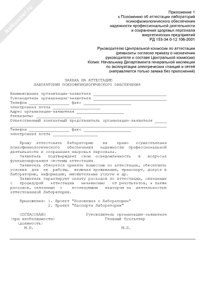Заявка на аттестацию лаборатории психофизиологического обеспечения надежности профессиональной деятельности и сохранения здоровья персонала энергетических предприятий (рекомендуемый образец заполнения)