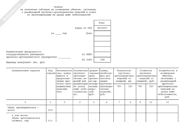 Заявка на получение субсидии на возмещение убытков, связанных с реализацией протезно-ортопедических изделий и услуг по протезированию по ценам ниже себестоимости (рекомендуемый образец заполнения)