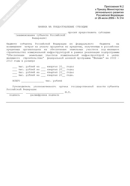 Заявка на предоставление субсидии субъекту Российской Федерации