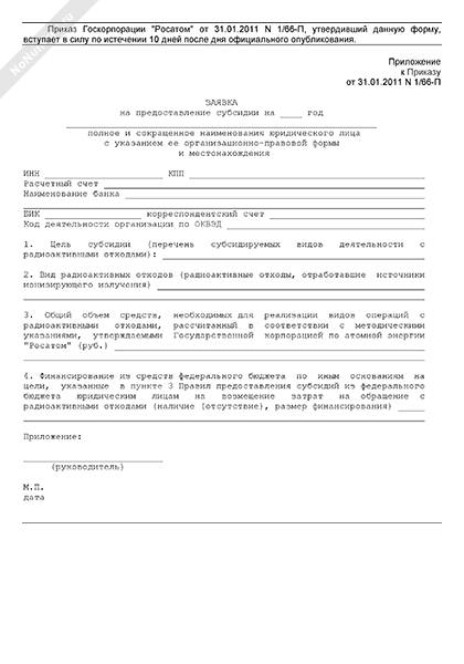 - Источник– Приказ Госкорпорации «Росатом» от 31.01.2011 № 1/66-П