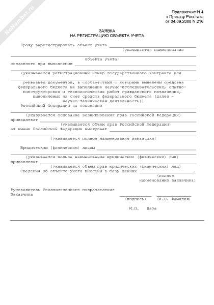 Заявка на регистрацию объекта учета в реестре Роснауки