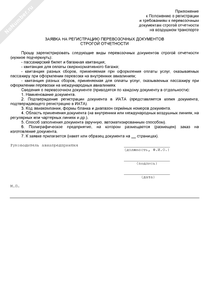 Заявка на регистрацию перевозочных документов строгой отчетности (рекомендуемый образец заполнения)