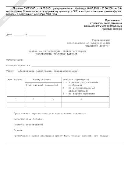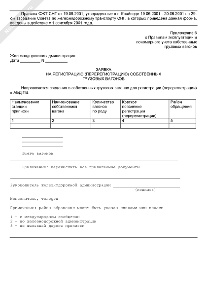 Заявка на регистрацию (перерегистрацию) собственных грузовых вагонов