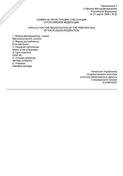 Заявка на регистрацию субстанции в Российской Федерации (рус./англ.)