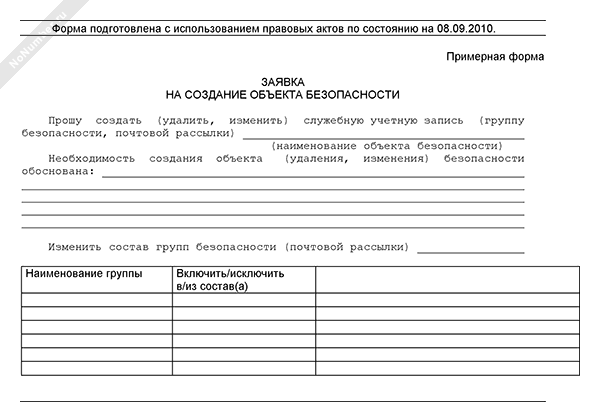 Заявка на создание объекта безопасности (рекомендуемый образец заполнения)