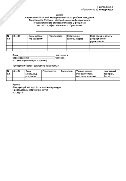 Заявка на участие в V зимней Универсиаде высших учебных заведений Минсельхоза России от сборной команды федерального государственного образовательного учреждения высшего профессионального образования (рекомендуемый образец заполнения)