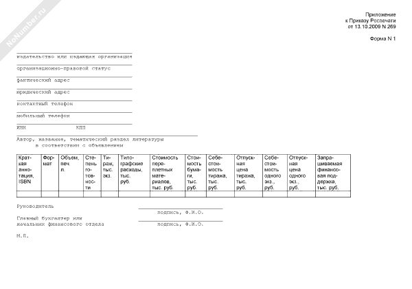 - Источник– Приказ Роспечати от 13.10.2009 № 269