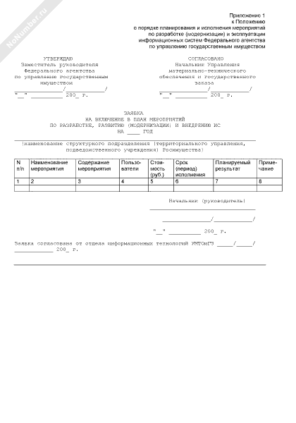 Заявка на включение в план мероприятий по разработке, развитию (модернизации) и внедрению информационных систем