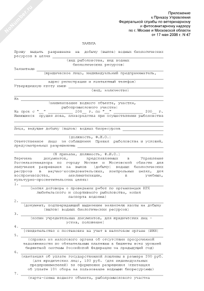Заявка на получение разрешений на право ведения промысла