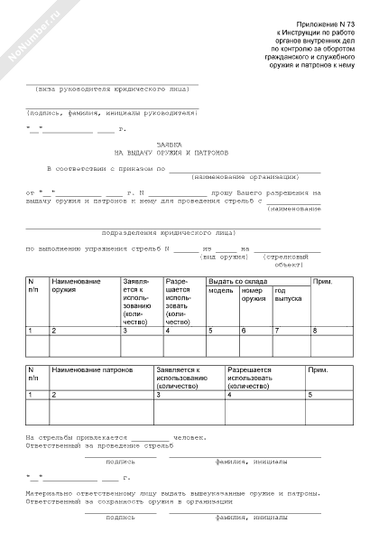 Заявка на выдачу оружия и патронов для проведения стрельб
