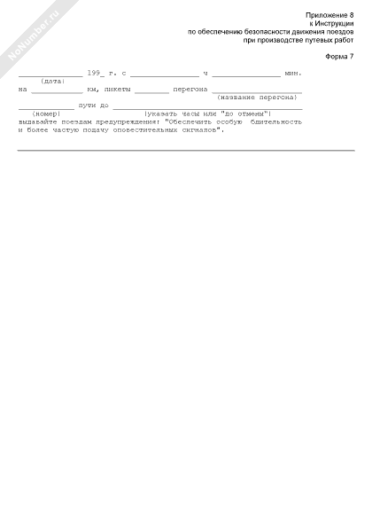 Заявка на выдачу предупреждения о особой бдительности и более частой подаче оповестительных сигналов на определенном участке пути (форма № 7)